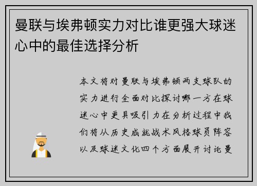 在即将到来的比赛中,阿尔克马尔将在主场迎战尼美根,这场对决无疑将吸引众多球迷的目光。作为荷兰足球联赛的重要一役,双方球队都渴望在这场竞争中取得胜利,以提升各自的排名和士气。文章将从四个方面详细阐述这一精彩对决:首先是两队的历史交锋记录,其次是球队近期状态分析,再者是球员个人表现与战术布置,最后则探讨比赛的影响因素与前景展望。通过全面分析,我们期待能揭示出阿尔克马尔与尼美根之间的激烈竞争氛围,以及这...